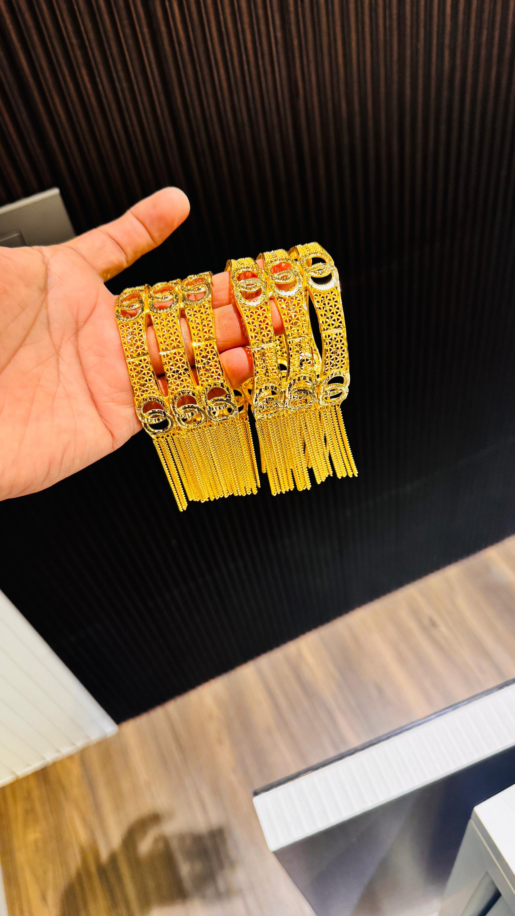 Made with a copper base and finished with premium 2-gram gold plating, the bracelet delivers a luxurious shine with a lightweight feel. Its elegant design makes it perfect for stacking or wearing solo as a statement piece.