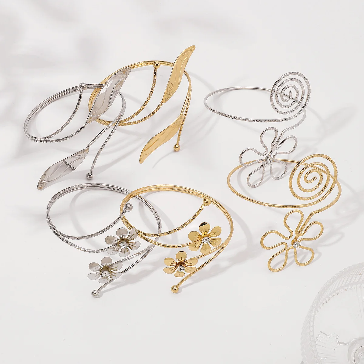 Punk-Inspired Adjustable Leaf & Flower Arm Cuff Bracelet – Bold Metal Upper Arm Bangle for Women