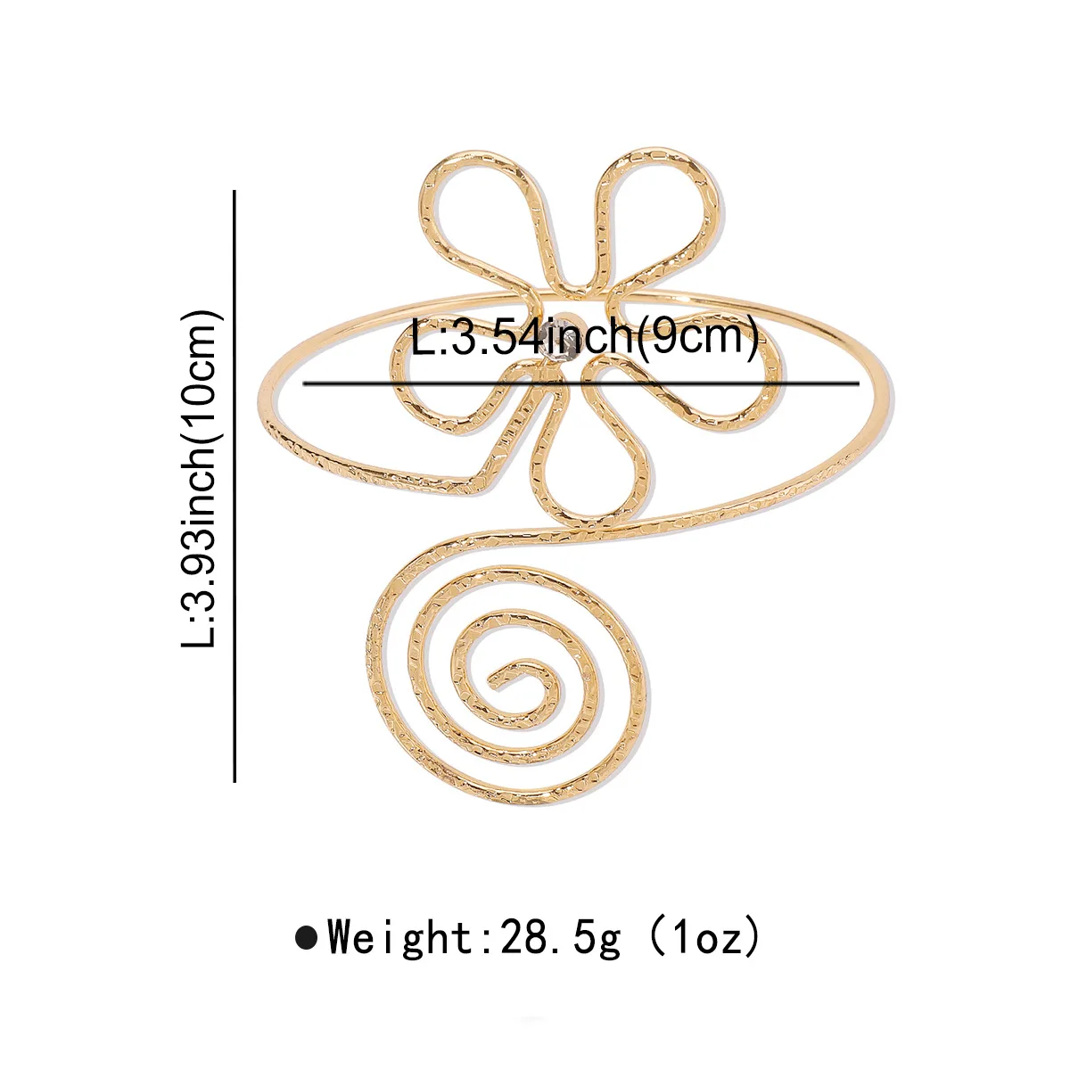 Make a striking statement with this punk-style leaf and flower arm cuff bracelet, designed to wrap elegantly around the upper arm. Crafted from durable zinc alloy with a radiant gold finish, this adjustable bangle combines edgy design with feminine plant-inspired detailing.