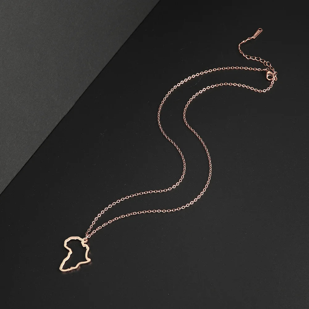 Trendy African Map Pendant Necklace for Women – Stainless Steel Geometric Motherland Necklace, Gold, Rose Gold, or Steel Color