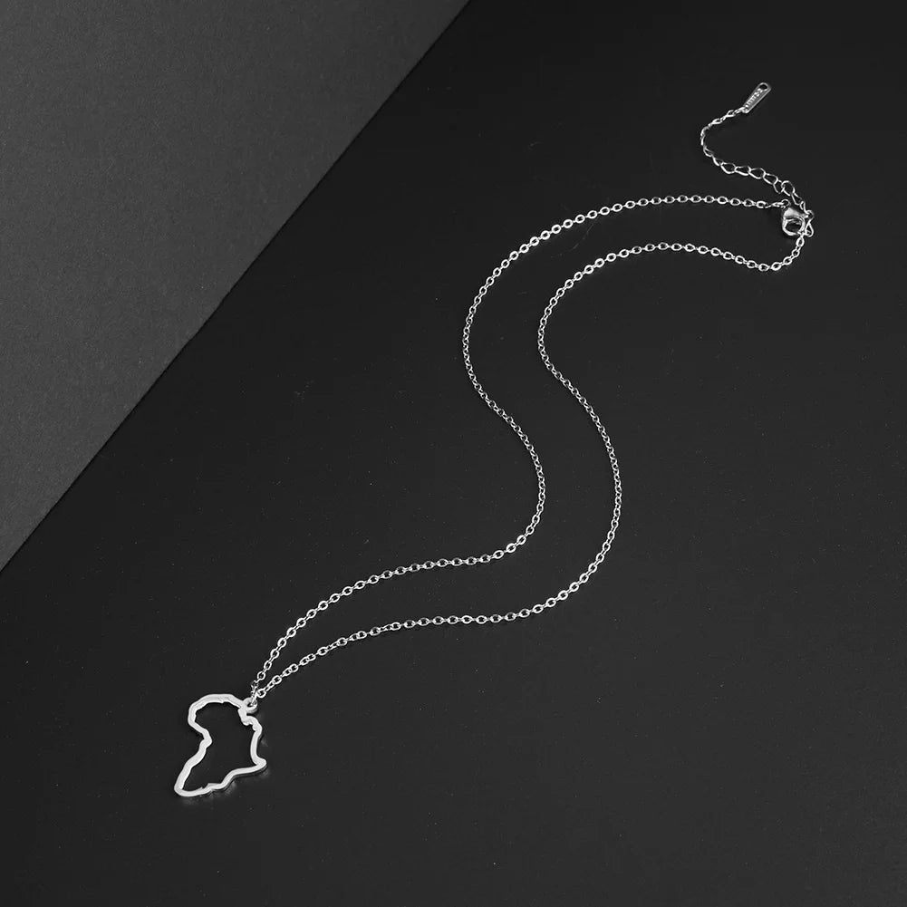 Celebrate heritage and style with this African Map Pendant Necklace. Crafted from durable stainless steel, this necklace features a hollow geometric African map pendant, making it a striking statement piece for daily wear or special occasions.